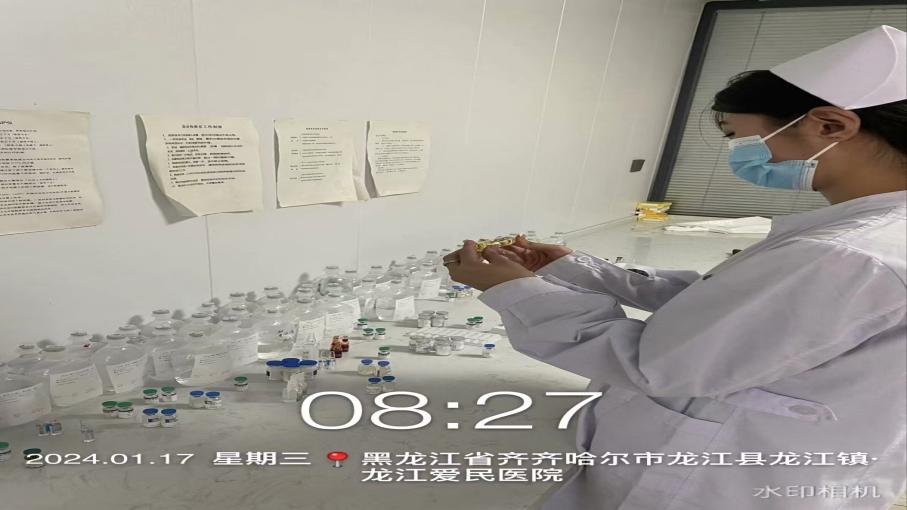 鲁桐在此次社会实践学期志愿服务中,去到了龙江县爱民医院,用自己所学的专业知识去做力所能及的事情,用三查八对的方法核对药物,配药,进行静脉输液等操作。