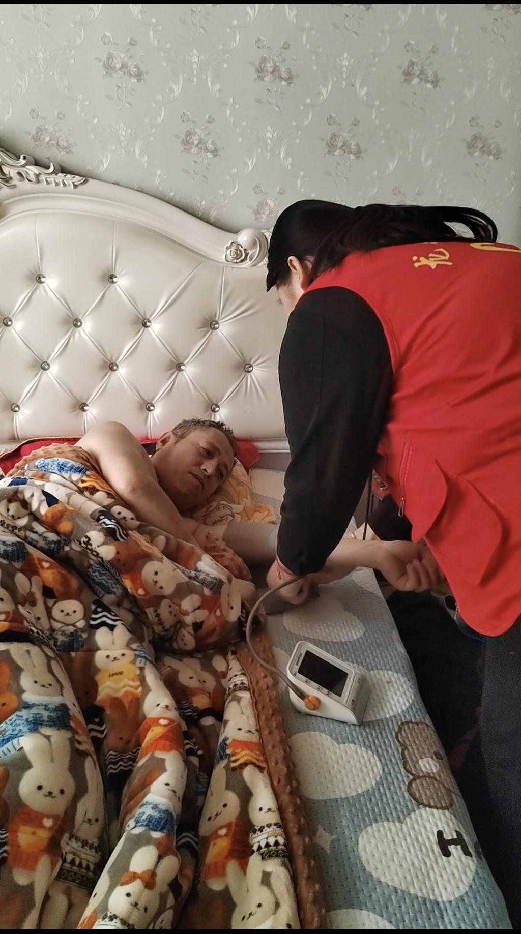2024年1月24日,HLX-086小组组员孙锐身穿志愿服去帮助养老院的老人量血压,此次志愿服务活动围绕着帮助老人们检查血压和健康指导进行。