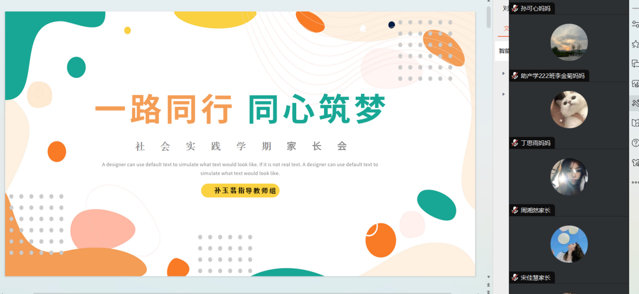 为了构建家校沟通的桥梁,进一步加强学校与家长之间的密切联系,让家长有效地与学校、老师合作,共同促进社会实践学期的有序进行。2024年1月21日20:00孙玉翡老师以线上腾讯会议形式召开了生涯学生家长会。本次会议由指导教师孙玉翡主持,生涯小组全体同学家长参会。