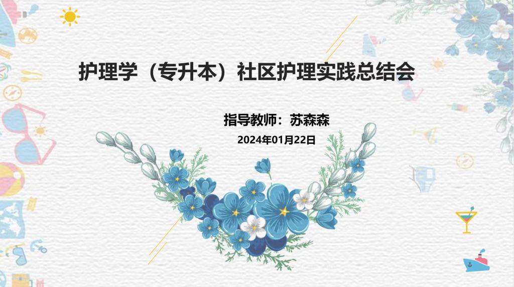 2024年1月22日晚17:00组织召开社区护理实践学期第四周总结会议。此次会议由健康与护理系指导教师苏森森主持,各地实习学生参加。