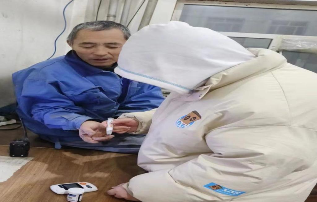 首先,郑奕先给老人们测量血压,血糖,耐心地与老人们讲高血压的危害和怎么去预防高血糖的发生,为他们送上关爱和问候。