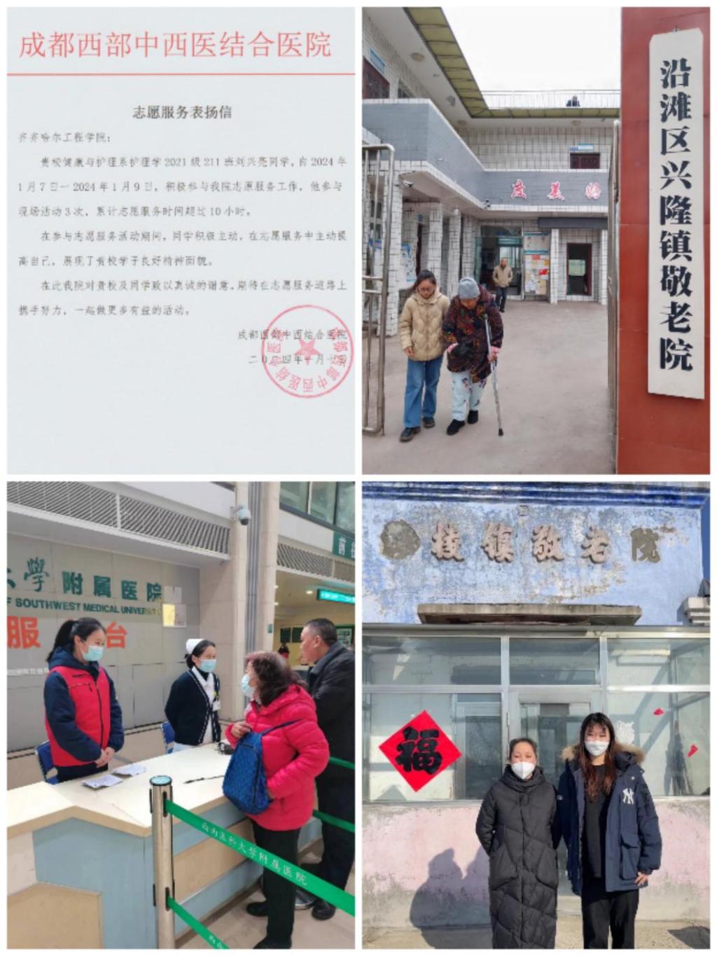 然后刘兴亮同学于2024年1月7日在成都西部中西医结合医院担任志愿者,做有关于导诊和住院部外部环境清理的服务。具体工作内容包括清理住院部外部残留垃圾,为患者或家属进行导诊服务等。在担任志愿者的过程中,刘兴亮同学得到了很多快乐与心灵的满足,并且体会到工作的成效取决于个人的积极性。