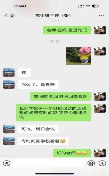 已经从高中生身份转变为大学生的董春婷,为表达对母校的教育之恩,于2023年1月18日采取线上方式对母校进行了回访活动,以表达对母校和老师的感激和怀念.