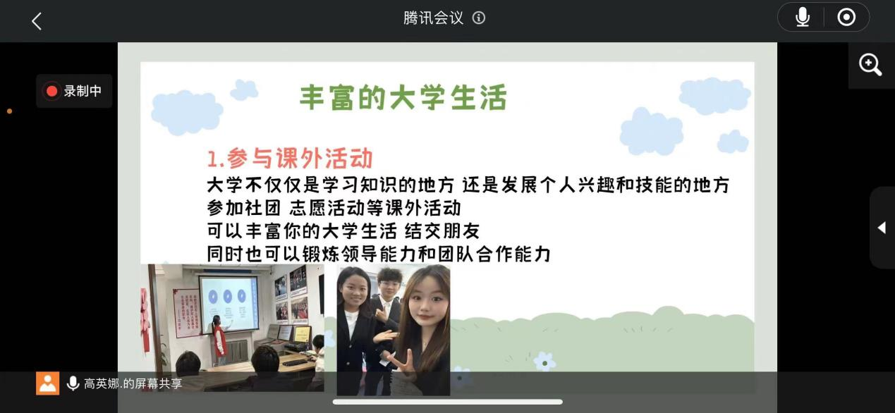 首先,我进行了自我介绍,我和同学们说了一下我高中来自哪个班级,大学就读于哪里。