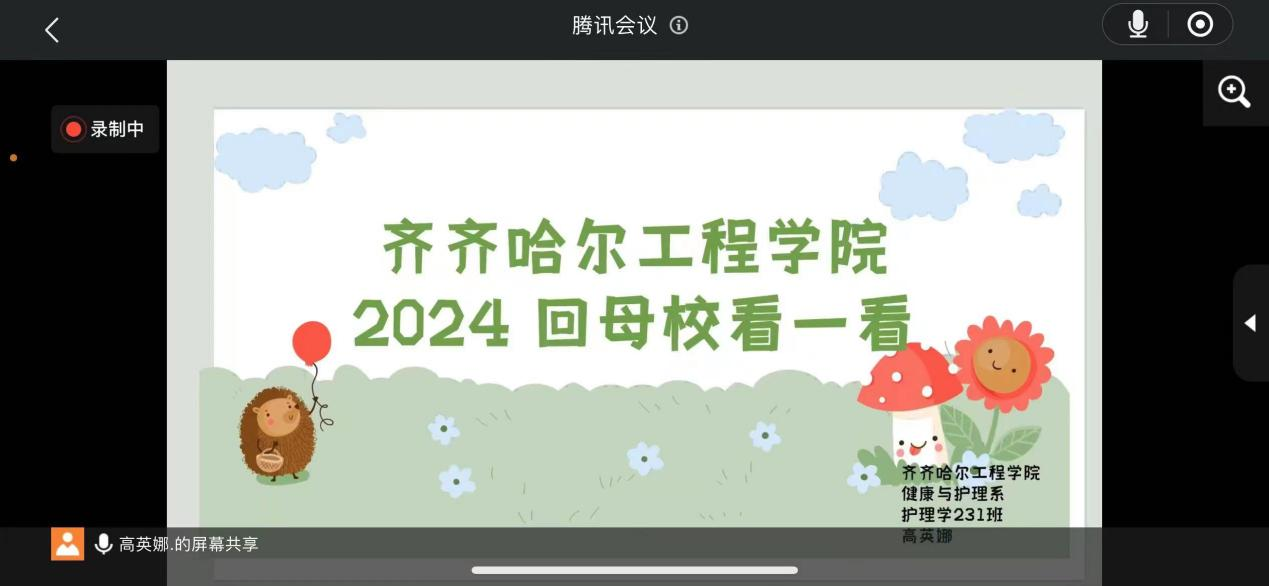 在大学生活的第一年,我参加了齐齐哈尔工程学院的母校回访活动,我很开心将自己在大学的生活分享给母校的学弟学妹们,也让学弟学妹们能在高考后多一个选择。由于学弟学妹们放假较早我选择了线上开展母校回访。在确定了要开展活动之前我怀着憧憬与期待认真地制作PPT,联系高中班主任征求他的意见,确定开展线上回访的时间是1月15日