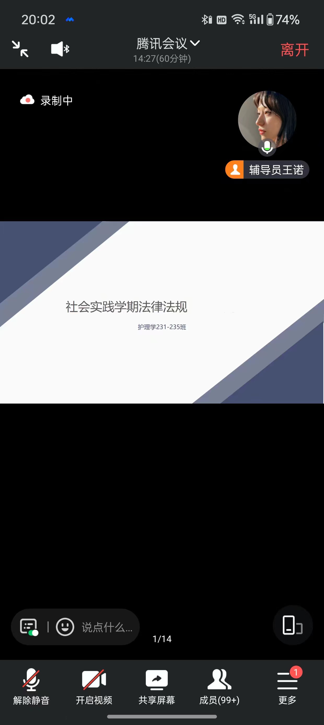 为了同学们春节寒假的安全。特此,2023年12月27日,护理学23级组织线上开展社会实践学期法律法规主题会议.会议由辅导员王诺主持,护理学23级全体同学参加。