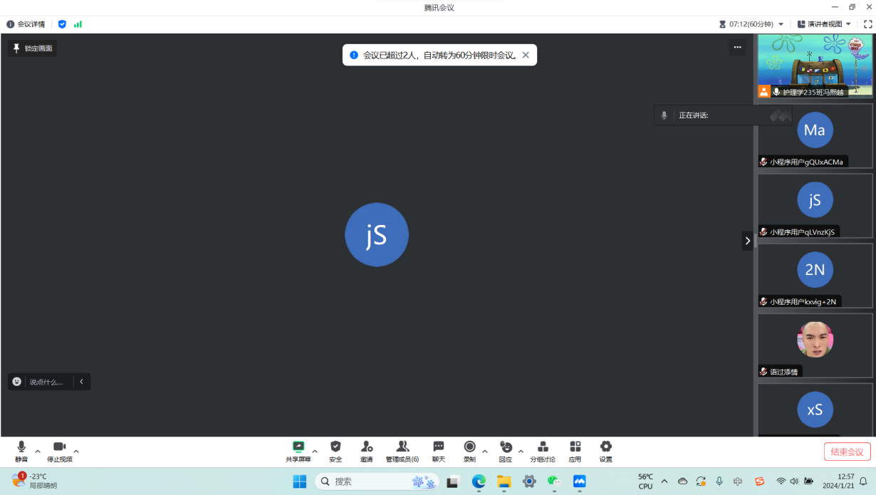 2024年1月21日12:50冯熙越在腾讯会议上召开有问题我来解答会议五人代表参加。