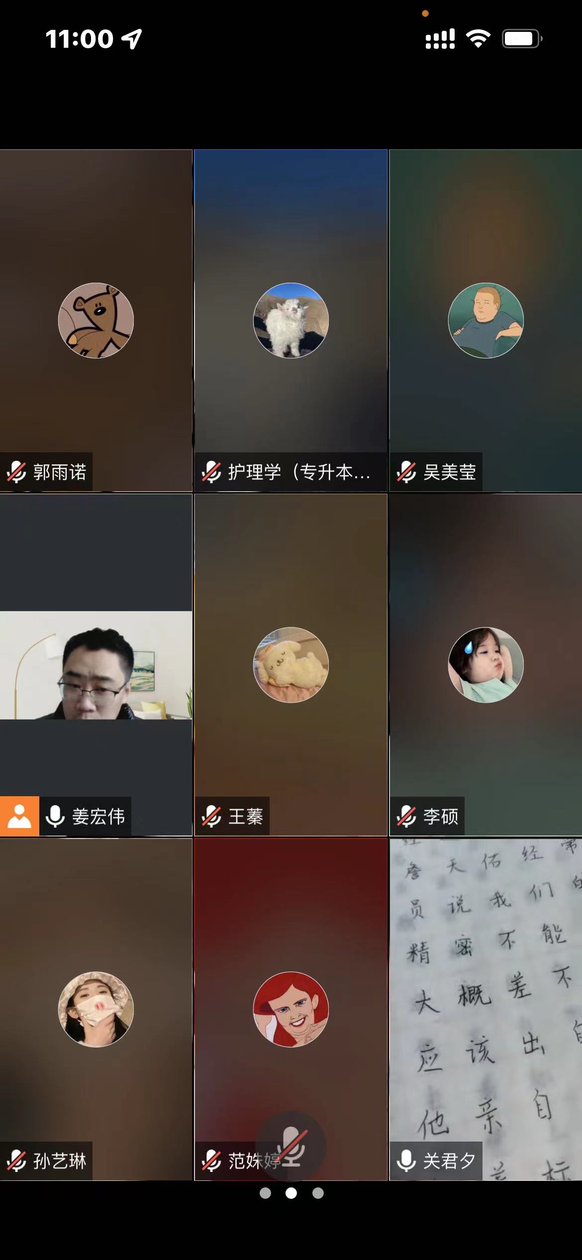 为更好落实我院社会实践学期教学特色,更好完成社会实践学期教学任务,2024年1月20日,健康与护理系指导教师姜宏伟老师通过线上腾讯会议召开社会实践学期第二周总结会议。本次会议由姜宏伟老师主持,护理学(专升本三年制)221班9名同学参加。