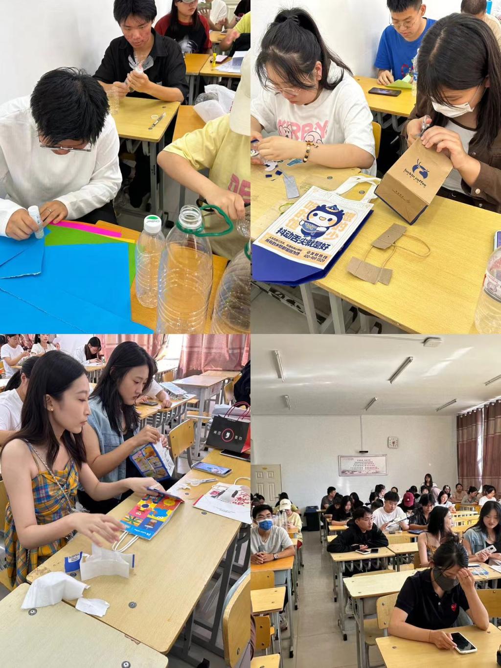 活动初期,宣传部部长车芳菲详细介绍活动规则,同学们积极响应,他们充分发挥想象力来将自己带来的奶茶袋、水瓶这些看似无用的“废品”利用自己的巧手劳动变废为宝,变成娇嫩的玫瑰、出淤泥而不染的莲花、创意独特的飞机等等。无不展现了康护系同学才思敏捷,心灵手巧。同时激发了同学们的创造力和艺术感知能力。这些作品内容丰富,精致美观,充分展现了手工艺品的魅力,每一瞬的选择都需要创意思考。通过手工劳动改造后的各色小物使人目不暇接,全然不见曾经被视为“旧物”的模样。活动结束,所有同学上交作品进行评奖。