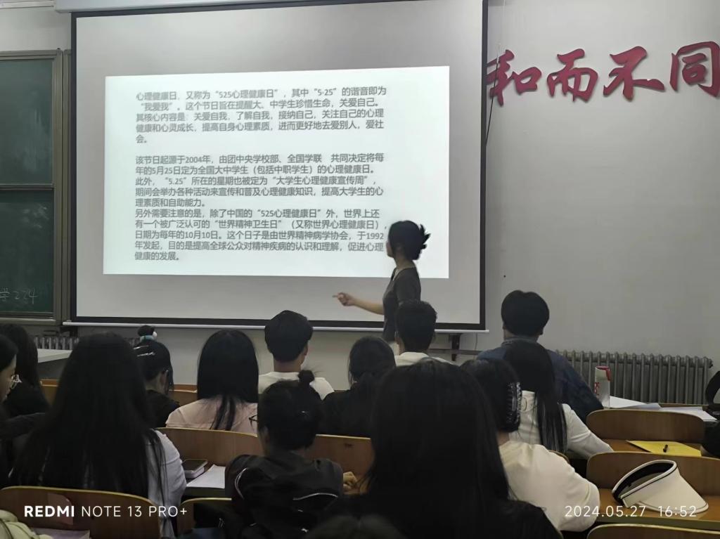 为了响应我国心理健康日的号召,提高学生的心理素质,护理学225班于2024年5月27日在1#1101举办了一场以“心理健康日”为主题的团日活动。本次活动由班级团支书刘悦同学负责主持,护理学225班的全体同学积极参与其中。