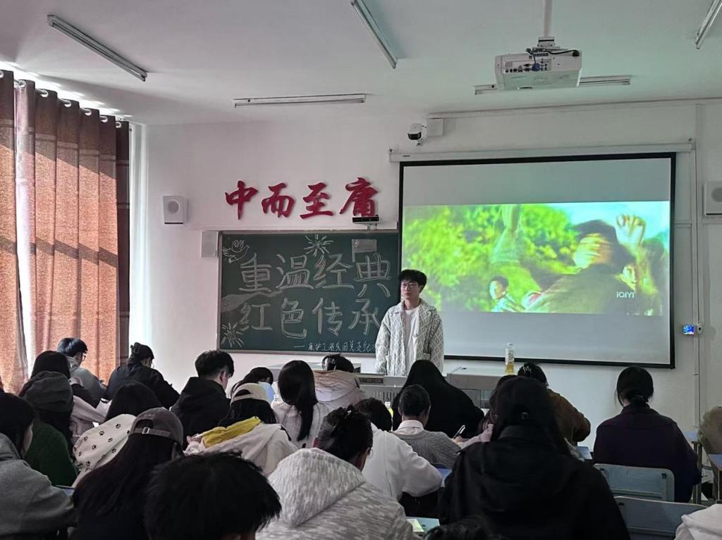 会议伊始,徐伟远详细讲解了本次活动的规则,向全体同学传达了“重温经典,红色传承”活动的重要意义。其次,徐伟远带领学生们观看红色电影,让学生们能够身临其境地走进那段波澜壮阔的革命历史。在光影交织中,深刻感悟先辈们的英勇无畏与爱国情怀,增强爱国主义情感。最后,学生们进行交流并书写观后感,大家表示要以革命先辈为榜样,坚定理想信念,为实现中华民族伟大复兴的中国梦贡献自己的力量。