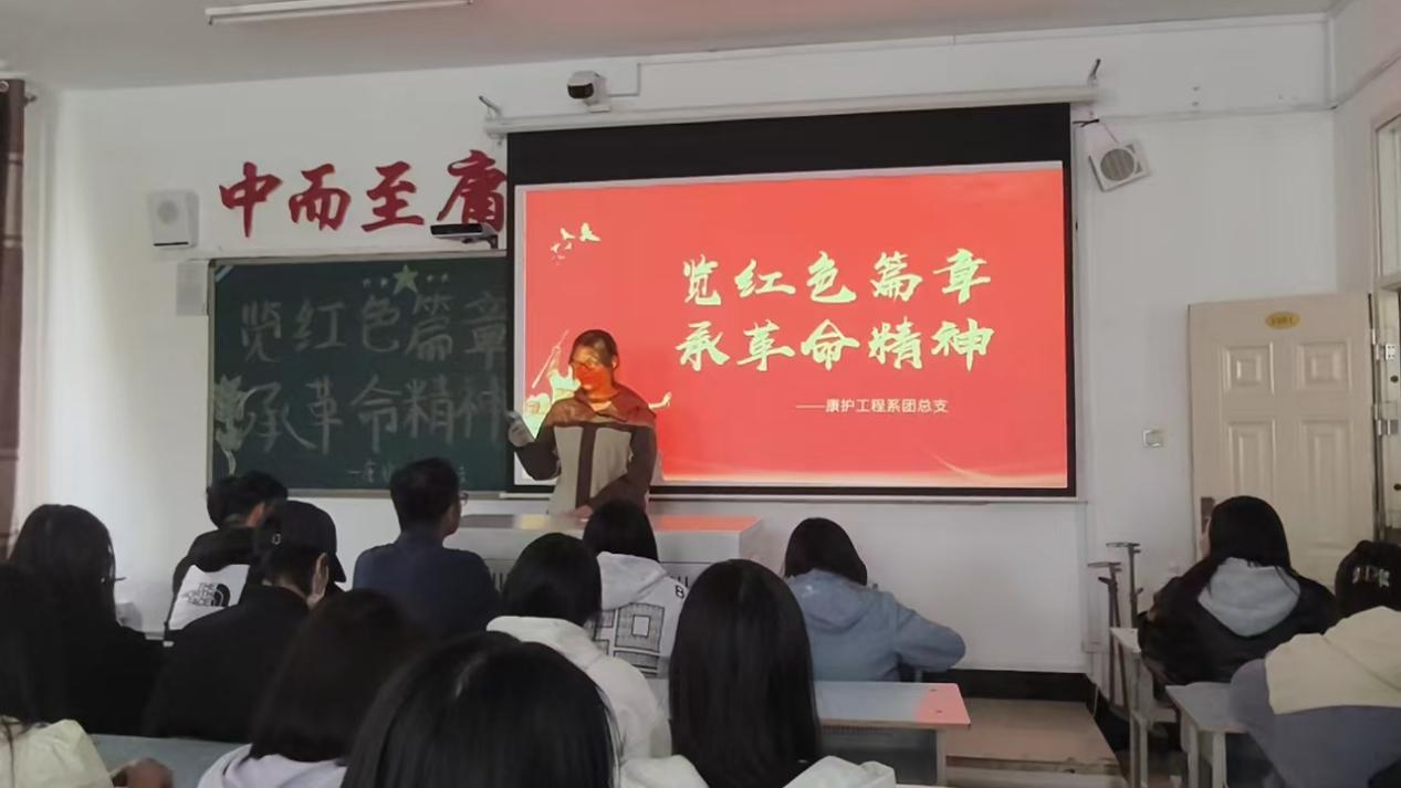 2024年10月13日,康护工程系团总支纪检部在 1#1201 组织开展“览红色篇章,承革命精神”主题活动。活动由纪检部部长徐伟远主持,康护工程系部分同学参加。