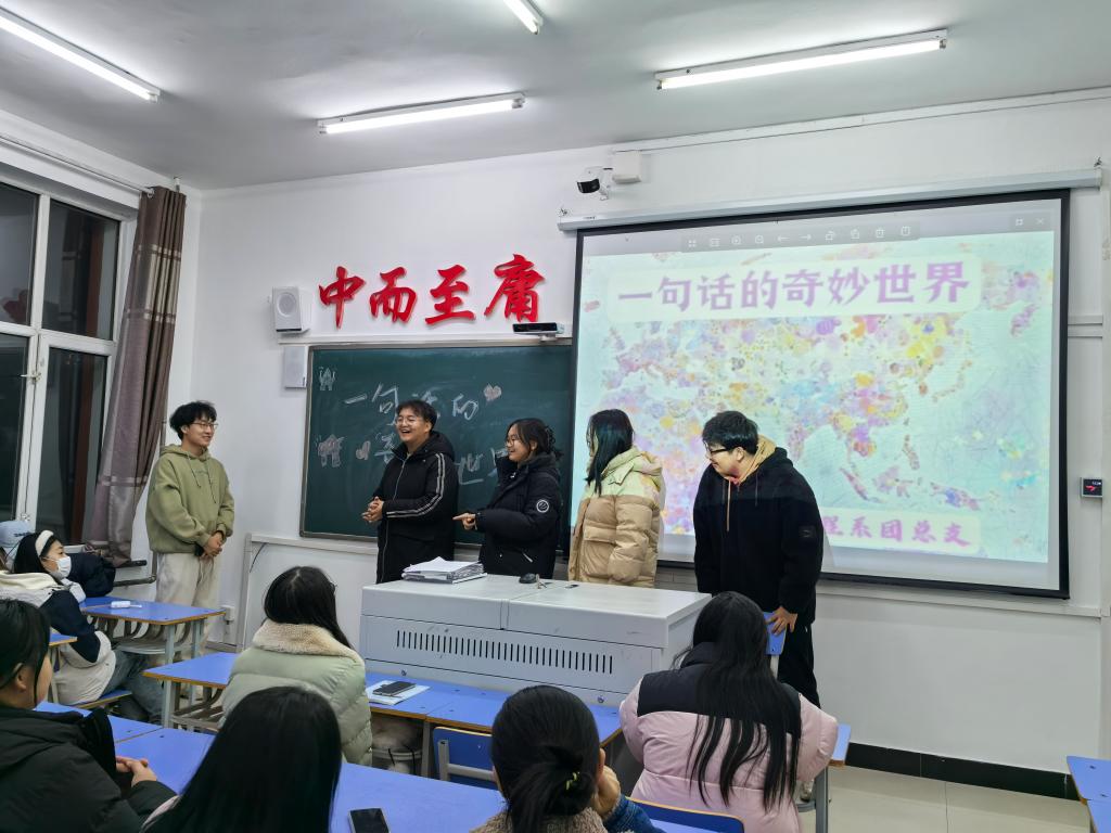 为了激发同学们的创造力与想象力,同时提高同学们的思想和情感表达能力。2024年11月5日,在1#1213康护工程系组织开展“一句话的奇妙世界”主题活动,康护工程系的同学们参与其中,活动由纪检部部长徐伟远主持。
