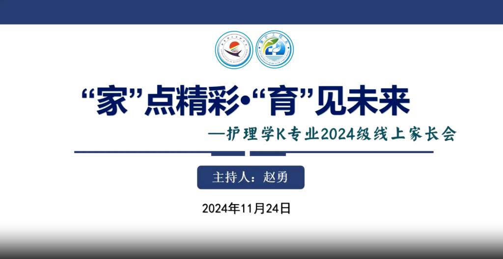 为推动家校共育,加深家长对护理学K专业人才培养机制的了解,建立家校沟通渠道,2024年11月24日,护理学K专业召开2024级本科生线上家长会。专业负责人孙晓雪参加会议,辅导员赵勇主持会议,60余名家长在线参与。
