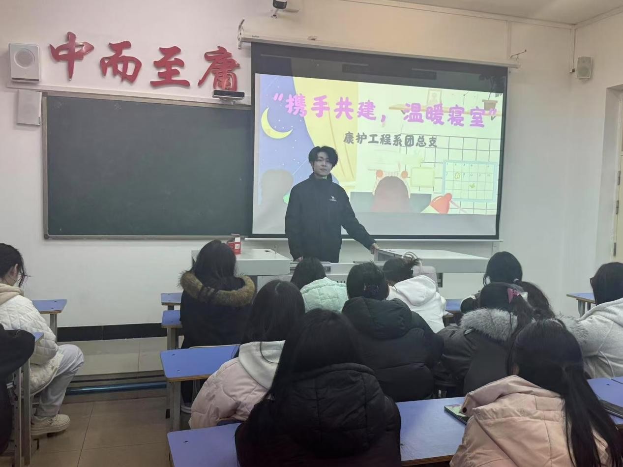 为了提升大学生寝室的文化氛围,增强寝室成员之间的凝聚力,康护工程系于2025年3月14日在1号教学区1211组织开展“携手共建,温暖寝室”活动。活动由组织部部长刘相泽主持,康护工程系部分同学参加。