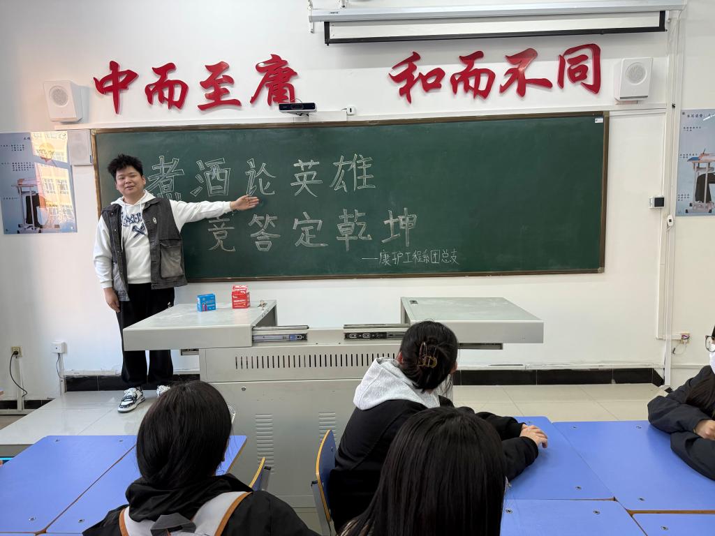 为弘扬中华优秀传统文化,激发同学们对经典名著的阅读兴趣。让同学们走进波澜壮阔的三国时代,感受历史文化的独特魅力。康护工程系团总支于4月22日在一号教学区1209教室组织召开“煮酒论英雄,竞答定乾坤”主题活动,本次活动由宣传部部长梁红丽负责,由许博主持。康护工程系部分同学参加。