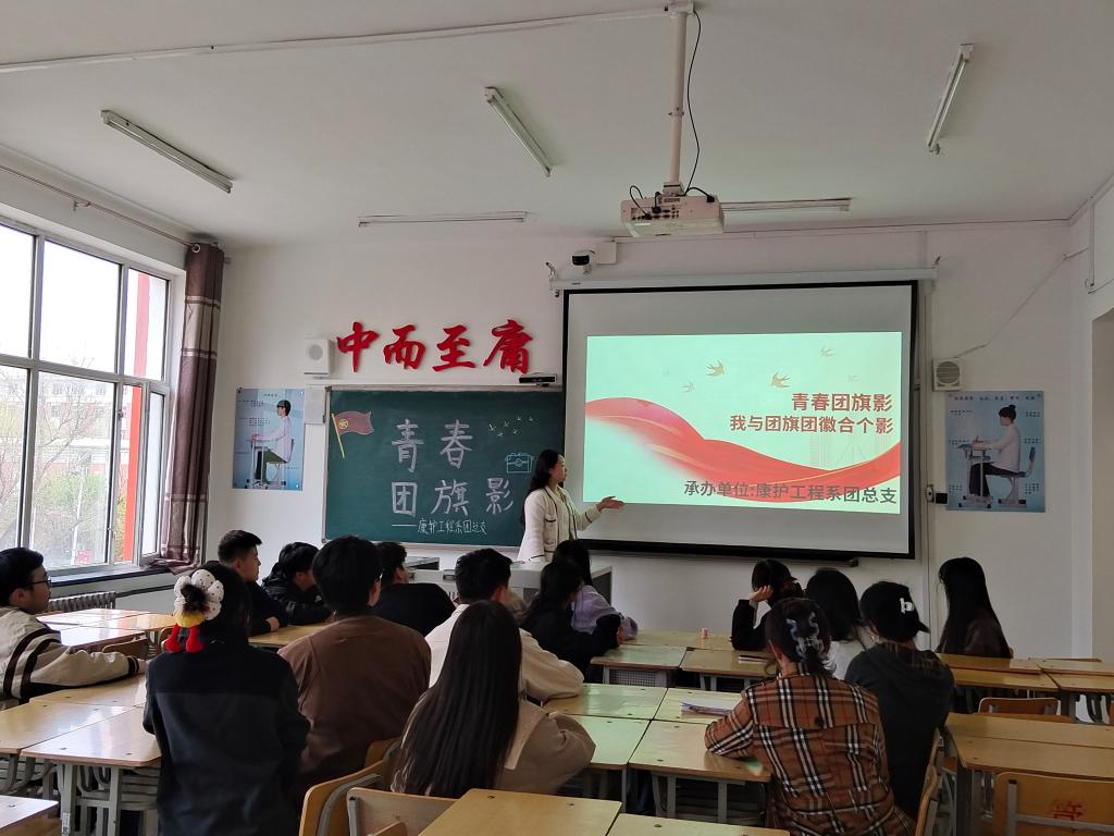 康护工程系团总支于5月8日在一号教学区1213教室组织召开“青春团旗影”活动。本次活动由纪检部部长柳秋茹负责,由王向睿主持,康护工程系部分同学参加。