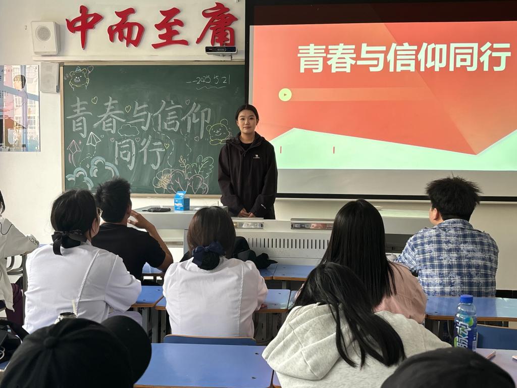 为了引导广大团员青年深入学习红色历史,传承红色基因,弘扬爱国精神;加深青年学生对爱国主义精神的理解。医学院委员会特此于5月21日在一号教学楼1209开展“青春与信仰同行”主题活动。由宣传部部长梁红丽主持。
