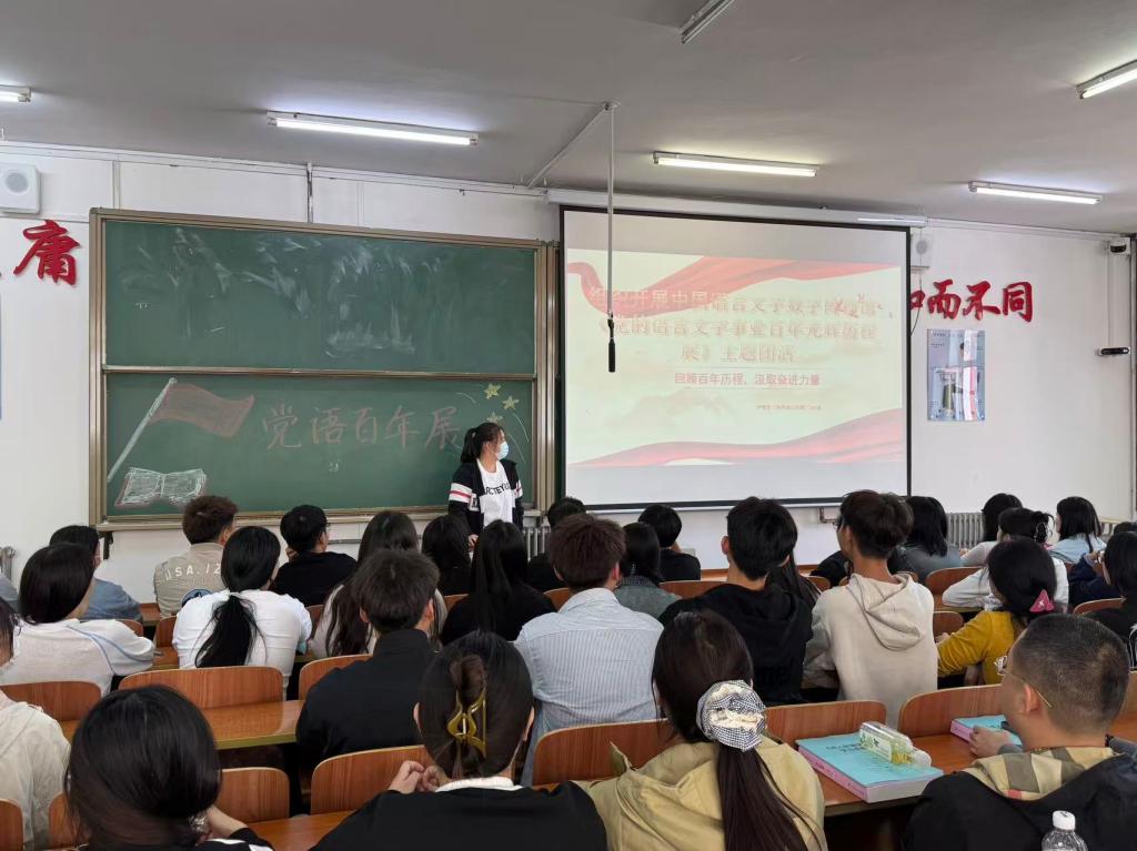 活动伊始,团支书以 PPT 为核心载体展开讲解。PPT 中不仅呈现了数字博物馆展览的核心内容,还通过时间轴梳理了党的语言文字事业从革命时期到新时代的百年发展节点,搭配重要政策文件截图、语言文字改革老照片等素材,让抽象的历程变得直观可感。其次,团支书还结合同学们的学习生活举例,比如对比不同时期的汉字规范标准,分析普通话推广对跨区域交流的意义,引导大家主动思考语言文字与个人成长、社会发展的关联。最后,团支书总结展览核心内容,强调语言文字是文化传承的载体、国家发展的基石,号召同学们在日常中规范用语用字,主动承担传承中华优秀语言文化的责任。