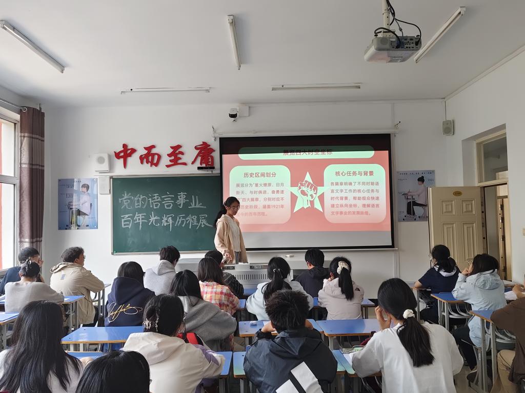 为了深入学习贯彻党的语言文字政策,提升学生语言文字应用能力,传承中华优秀语言文化,护理学241班于9月11日在一号教学区1209教室组织开展中国语言文字数字博物馆《党的语言文字事业百年光辉历程展》主题团日活动。本次活动由学校语委会主办,护理学241班团支书杨培材主持,全体同学参加。