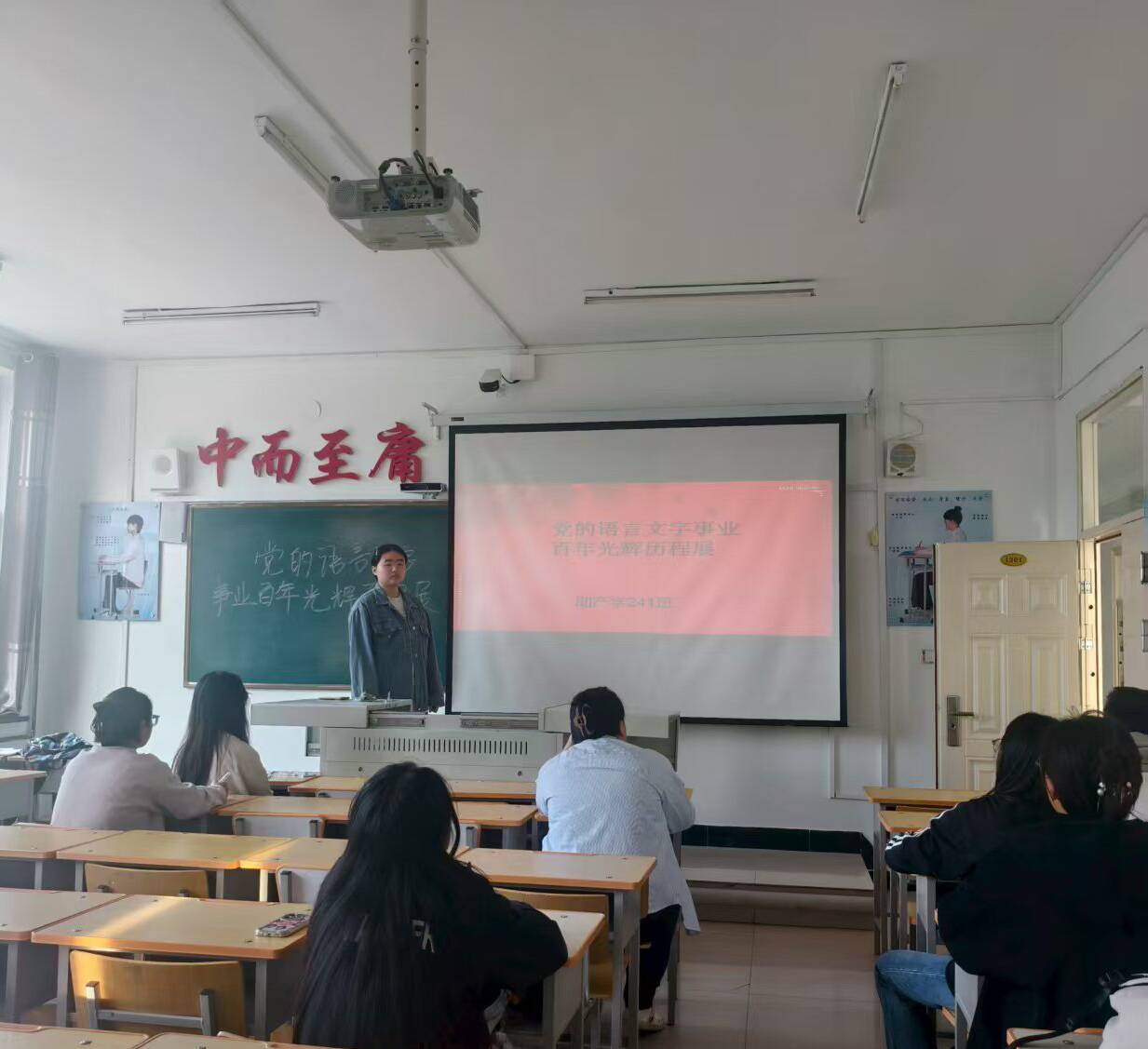 活动伊始,团支书李嘉鑫以图文并茂的形式,系统梳理了从新文化运动时期的白话文推广,到新中国成立后的汉字简化、普通话普及,再到新时代语言文字规范化、信息化、国际化发展的历史脉络。同学们通过观看展板、聆听讲解,深刻体会到语言文字事业在增强民族凝聚力、促进社会进步、服务国家战略中的重要作用。最后,团支书李嘉鑫结合党史与语言文字政策,阐释了语言文字工作如何服务于人民群众的文化需求和教育事业。