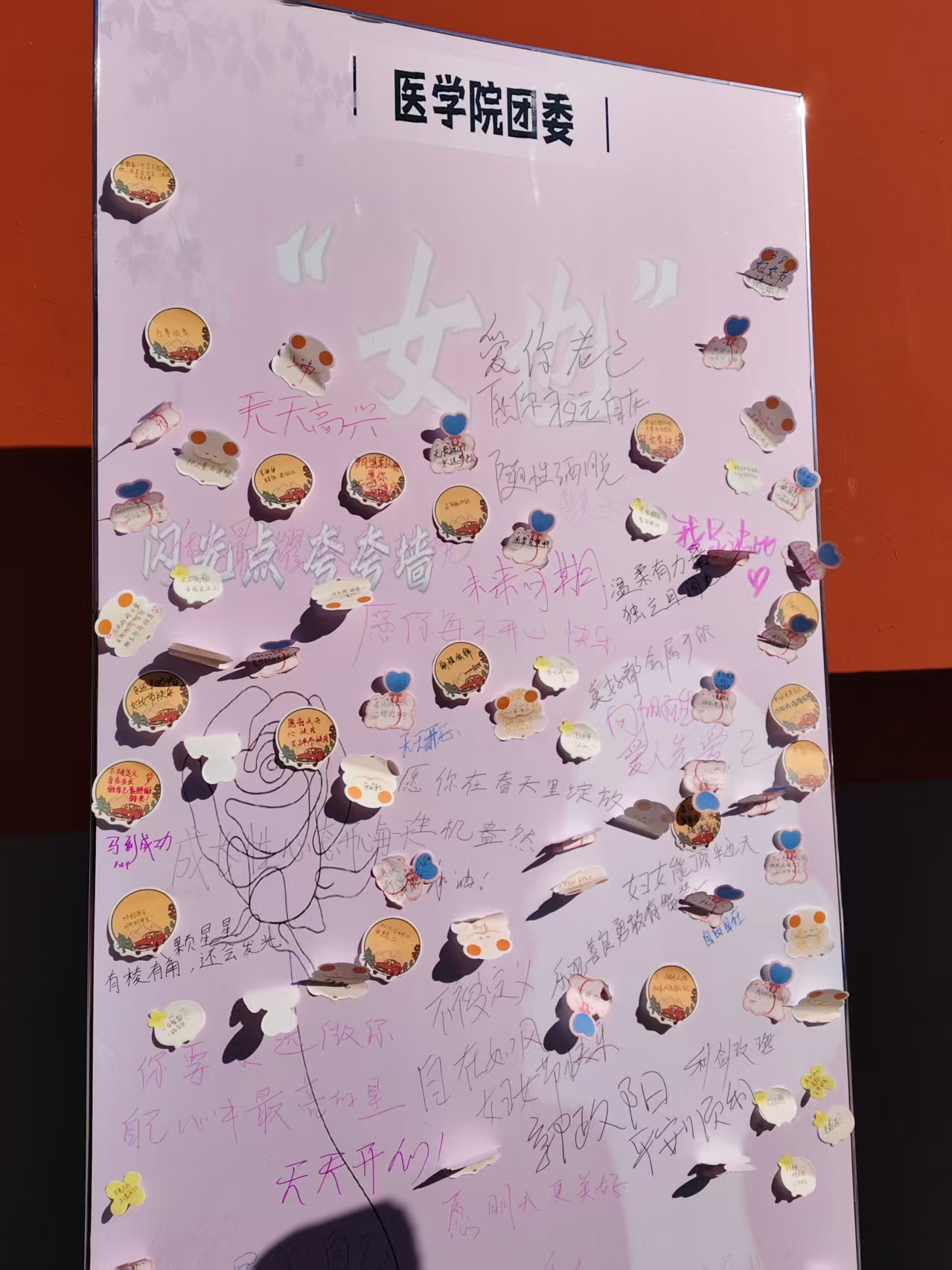 为庆祝第116个“三八”国际妇女节,营造尊重女性、关爱女性的校园氛围,医学院团委于3月6日在一号教学楼楼下开展“如花绽放,熠熠生辉”主题活动。本次活动由宣传部部长关雯月组织,共100人参与。