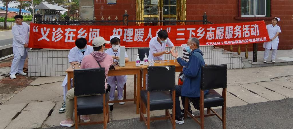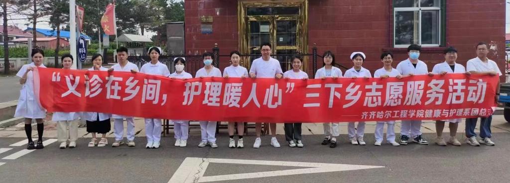 2023年7月19日,健康与护理系团总支到龙江县山泉镇组织开展以“义诊在乡间,护理暖人心”为主题的“三下乡”社会实践活动,本次活动由齐齐哈尔工程学院健康与护理系党员教师、老师及学生干部于龙江县山泉县镇出席参加。