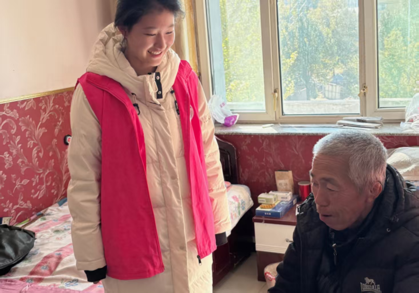 活动现场,同学们分工明确,有的陪伴在老人身边,耐心倾听他们讲述年轻时的峥嵘岁月,欢声笑语不绝于耳;有的则发挥特长,为长者们表演了精心准备的八段锦,整齐的八段锦动作吸引了全场老人的目光,手把手教学环节更是调动了老人们的参与热情。院子里,随处可见志愿者手把手调整老人姿势的身影。起初有些拘谨的爷爷奶奶们,在同学们热情地鼓励和帮助下,也逐渐放松下来,认真地跟着学习。此外,同学们还整理了院内环境,并为行动不便的老人搬运物品。