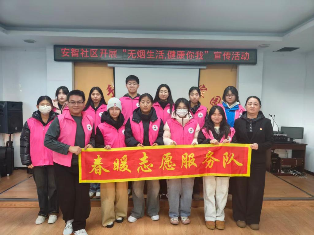 活动伊始,安智社区负责人向同学们普及了烟草危害相关知识,帮助同学们深入了解吸烟对个人健康、家庭幸福及社会和谐的负面影响,切实提升控烟认知水平。随后负责人倡导无烟生活方式,鼓励有吸烟习惯的同学主动戒烟,引导非吸烟同学坚决拒绝二手烟、三手烟暴露,凝聚健康生活共识。呼吁同学们共同维护清新健康的环境,相互监督提醒,携手共建无烟生活。最后组织同学们分组发放“无烟生活,健康你我”宣传单。