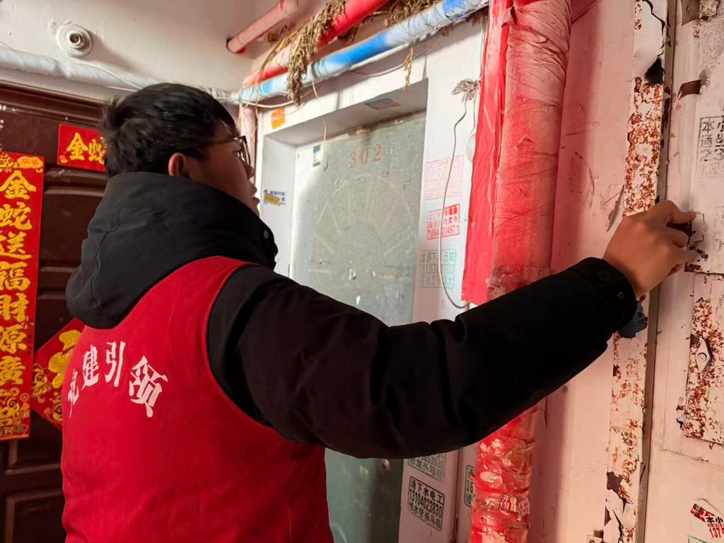 活动伊始,五福社区负责人向同学们介绍,辖区小广告频发,复发率达60%,粘贴类、插塞类尤为突出。粘贴类占比最高,纸质单页粘贴,部分叠贴成“广告墙”;插塞类塞于雨刮器、门缝、信箱,多为宣传单,易致垃圾散落,污染环境。随后,负责人带领同学们前往居民楼实地排查违规广告,大家分头行动,逐层逐户开展检查。亲眼所见的乱象,让同学们真切感受到小广告对环境的污染与破坏。最后,大家齐心协力将排查出的违规广告彻底清理干净。