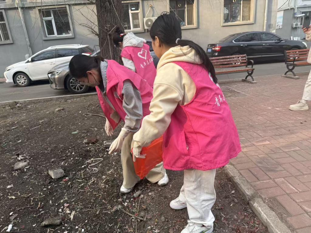 活动伊始,由青工委员王涵发放统一的粉色志愿马甲,精神昂扬、整装待发。随后,大家分工协作,手持清洁工具,对社区内的绿化带、公共活动区域进行全面清扫,认真捡拾纸屑、塑料袋、枯枝等杂物。志愿者们以饱满的热情投入劳动,用双手扮靓社区环境,展现了青年一代积极向上、乐于奉献的良好风貌。
