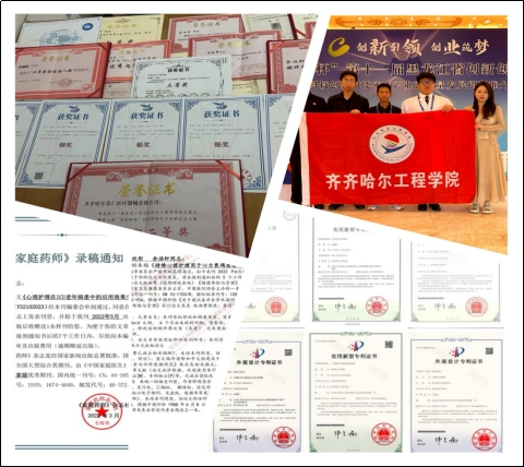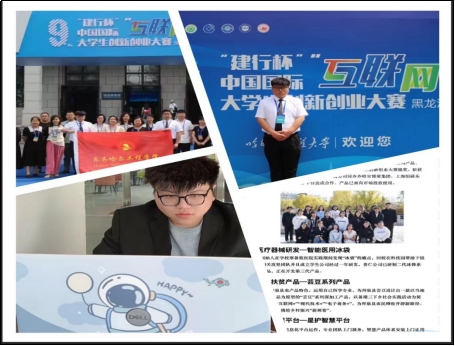 大学两年他荣获:第八届“互联网+”创新创业大赛校赛银奖、省赛铜奖;第九届“互联网+”创新创业大赛省赛(两银两铜);第十一届“青创咖啡杯”齐齐哈尔市创新创业大赛初创组二等奖;第十八届“挑战杯”+学术作品竞赛省赛三等奖;首届黑龙江省中华职教社创新创业大赛一等奖;“星护”-智慧到家云医养养老创新方案和国内首创智能冰袋的研究设计两项入选为省级大创项目。发表专利6项,软著一项,论文3篇。荣获学校“优秀内务个人”、“抗疫之星”、“优秀毕业生”、“四月感动校园人物”、“大庆市优秀青年志愿者”诸多荣誉称号。