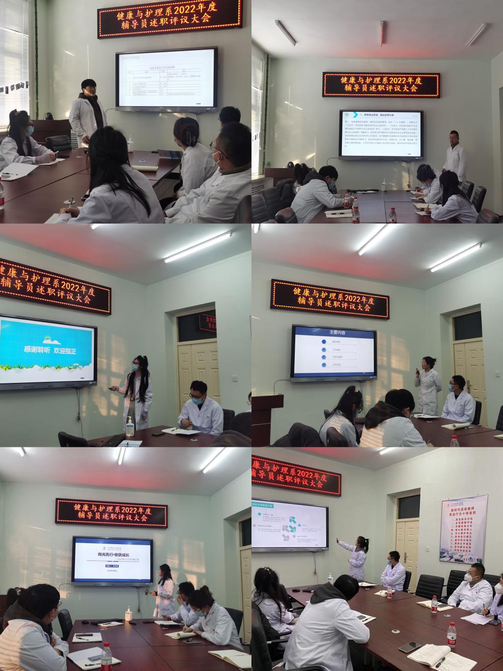 为贯彻落实学院立德树人的教育方针,切实加强我系辅导员队伍建设,总结凝练工作特色,汇报展示工作成果,推动辅导员工作的科学化、规范化。健康与护理系于2023年1月11日下午在1#2104会议室召开以“述职总结亮答卷,凝心聚力谱新篇”为主题的2022年辅导员述职评议会。本次会议由学生工作负责人姜宏伟主持,辅导员老师赵勇、杨嘉琪、米新、黄卓、李安琪、孙名序参加会议。