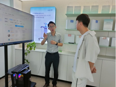 随后,在小理家总部,技术负责人向调研团队介绍小理家AI智能理疗机器人的工作原理、技术特点及应用场景。该机器人凭借其先进的智能技术和显著的理疗效果,获得调研团队的认可。团队成员亲身体验机器人的理疗服务,并表示其操作便捷且体验舒适。