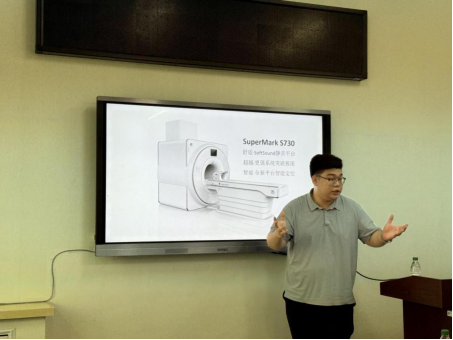 首先,在产品介绍交流会上,深圳安科磁共振产品经理杨少迪介绍了磁共振系列(1.5T、3.0T),对磁体、谱仪、梯度和射频参数等方面,以及磁共振独家的技术和产品的优势进行详细的讲解。在磁共振领域,介绍高场强磁共振及多模态成像等最新成果,通过智能化设计提升图像质量,简化操作,为医生提供精准便捷的诊断工具。