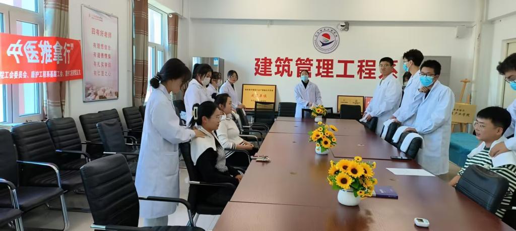 2024年11月20日至21日,康护工程系基层工会、学校卫生所、机关基层工会承办“暖冬送健康 中医推拿行”活动。本次活动共计服务来自17个部门的114位老师,学生志愿者72人。