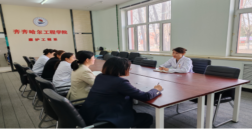 4月16日上午,在一号教学区2104会议室,康护工程系与哈尔滨医科大学附属第四医院神经外科开展学术交流。参会人员有哈尔滨医科大学附属第四医院神经外科护士长刘爽、康护工程系主任郭玲玲、教学副主任张林琳及护理学(专升本)专业教师等。