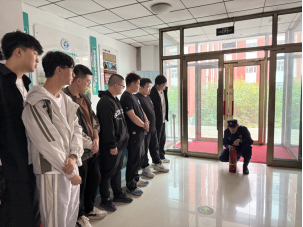 演练前,倪伯亮老师结合实验室电气短路、化学品泄漏等真实案例,重点讲解火灾预防、应急逃生及灭火器、灭火毯、消防栓的使用要点。随后,模拟实验室因电气故障突发火情,现场浓烟弥漫。警报拉响后,师生立即启动应急预案:学生迅速拨打“119”报警,精准报告火情;其余人员用湿纱布掩口鼻,按预定路线弯腰低姿撤离,仅3分钟便安全集结,各学院学生代表快速完成人数清点并汇报。实操环节中,倪老师现场演示灭火器“提、拔、握、压”四步法及灭火毯覆盖灭火技巧,并指导学生代表操作,进一步强化了学生的实战能力。