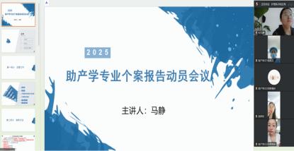 为强化助产学专业学生个案报告书写的学术规范性,提升报告质量与专业实践能力,2025年11月12日,助产学专业以线上形式召开个案报告撰写动员会议。会议由专业长马静主讲,相玉秀老师协同讲解,专业全体学生积极参会,为规范个案报告撰写、坚守学术诚信筑牢思想与实践基础。