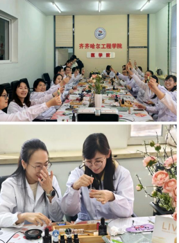 2025年11月21 日,齐齐哈尔工程学院医学院“精油调理师微专业”精油DIY手工制作工作坊顺利开展。医学院副院长郭玲玲、护理学(专升本)专业长苏森森及专业老师们进行现场学习,在香气与匠心的碰撞中,开启了一场兼具趣味与专业的疗愈手作之旅。