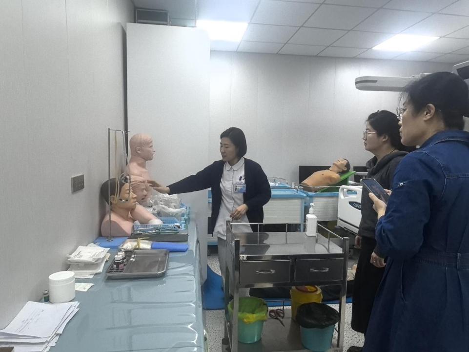 会后,学院团队在牛护士长陪同下参观模拟病房,了解医院模拟教学设施与方法。模拟病房设备齐全,高度还原临床环境。参观中,牛护士长介绍使用流程与教学案例,分享培养学生技能的方法。团队成员结合学校实际,交流模拟教学问题,探讨加强合作、提升教学质量的可能。