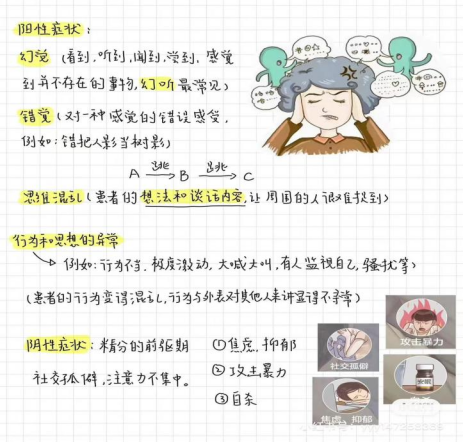 关键词:幻觉、妄想、思维联想障碍