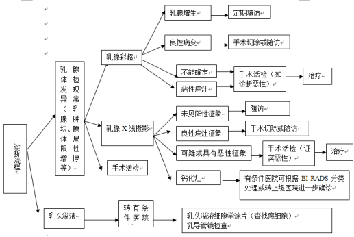 (4)介绍诊断方法原理及适应证,如超声、钼靶等,以及与良性疾病鉴别诊断。