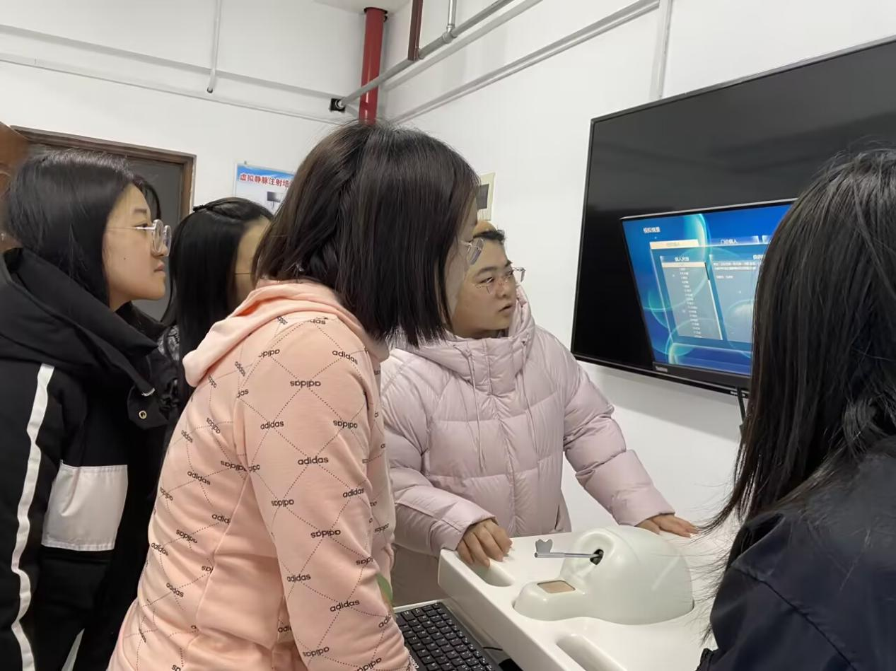 此次学习以示教室内虚拟静脉注射培训系统设备为主要学习内容。二楼楼层负责人杨扬老师为大家演示了设备中的训练学习内容,细致讲解了静脉注射和静脉采血的操作流程和注意事项。现场参与老师积极踊跃,主动上手进行设备操作,在实践中筑牢设备使用基础。