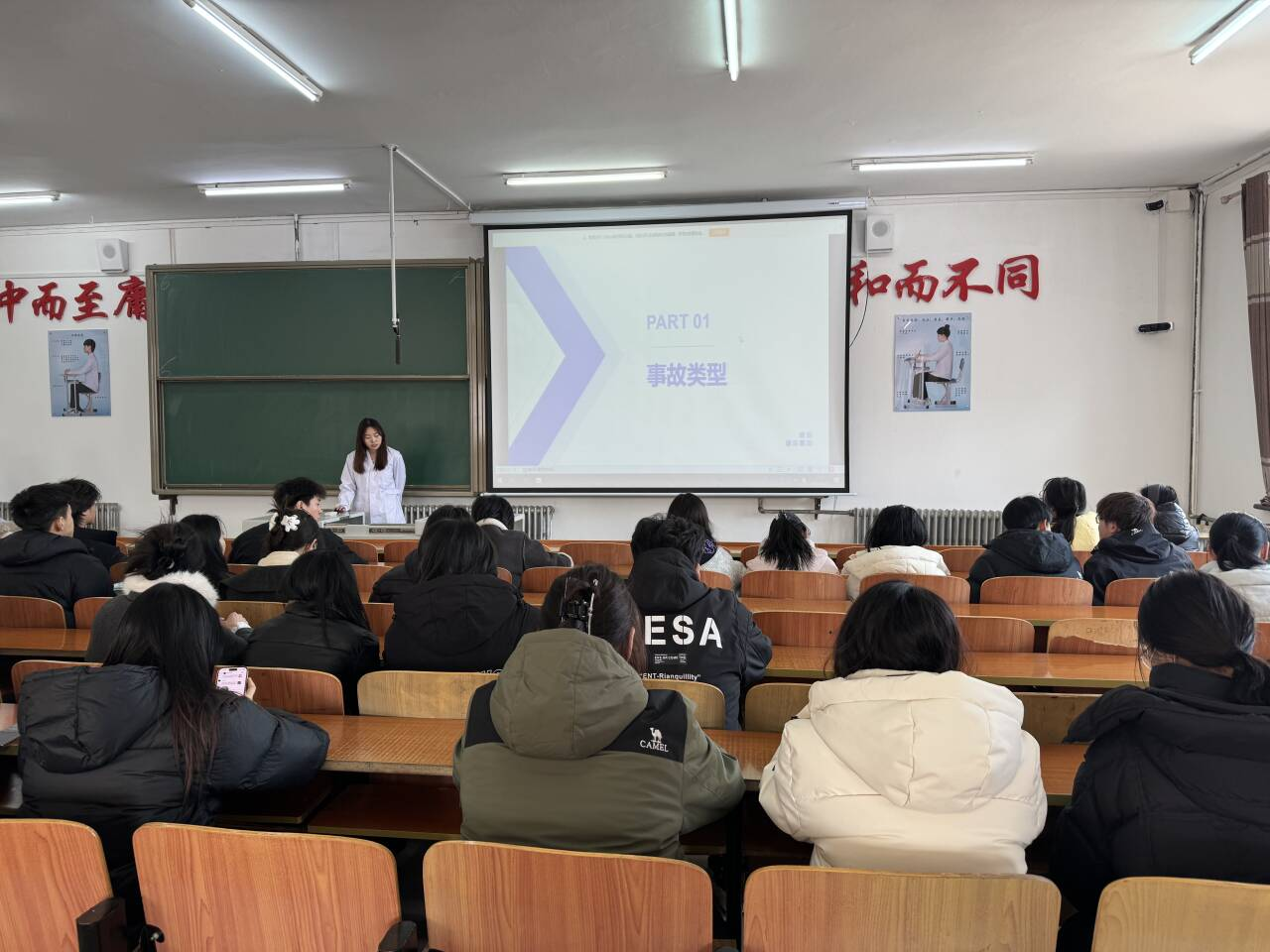 培训中,各实验(训)室管理实验技术人员围绕实验室安全的关键环节进行了系统讲解。丛婉怡老师详细解读实验室基本安全守则,强调学生进入实验室前须在1楼更衣室规范更换全套护士服,女生应注意头发与指甲的整理,男生需规范着装,严禁穿着帽衫及黑色裤子。同时,要求保持室内环境卫生,储物柜内不得存放任何物品,实训中心内严禁携带食物和吸烟。李月老师重点讲解医疗及生活垃圾的分类处理流程:医疗废物须置于黄色专用垃圾袋内,严密封闭后统一送至医疗垃圾暂存处,严禁堆放于门口;生活垃圾则放入黑色垃圾袋,封闭后送至校园生活垃圾房,确保分类规范、处置安全。针对突发事故应对,安迪老师讲解了火灾、爆炸等紧急情况的处置方法。发生火情时,切勿惊慌,小火可使用灭火毯覆盖扑灭,火势较大时应立即使用灭火器并拨打119报警;如遇爆炸事故,第一发现人须迅速报告实验技术人员或教师,做好现场警戒并同步报警。杨扬老师现场演示灭火器的规范操作流程,详细讲解“提、拔、压、扫”四步法:提起灭火器,拔下保险销,压下手柄,对准火源根部扫射,帮助学生掌握正确使用方法。